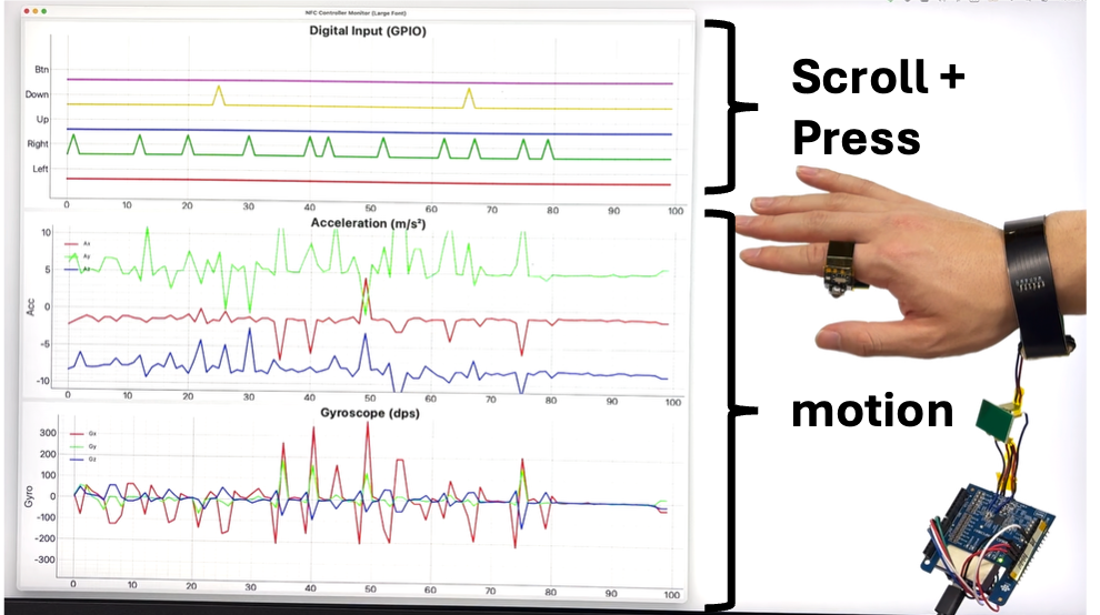 Y. Li, M. Fukumoto, M. Kari, T. Yokota, T. Someya, Y. Kawahara, and R. Takahashi, “Demo of picoRing mouse: ultra-low-powered wireless mouse ring with ring-to-wristband coil-based impedance sensing,” Extended Abstracts of the CHI Conference on Human Factors in Computing Systems (CHI EA ’25), Article 707, pp. 1 – 5, Yokohama, Japan, April 2025.